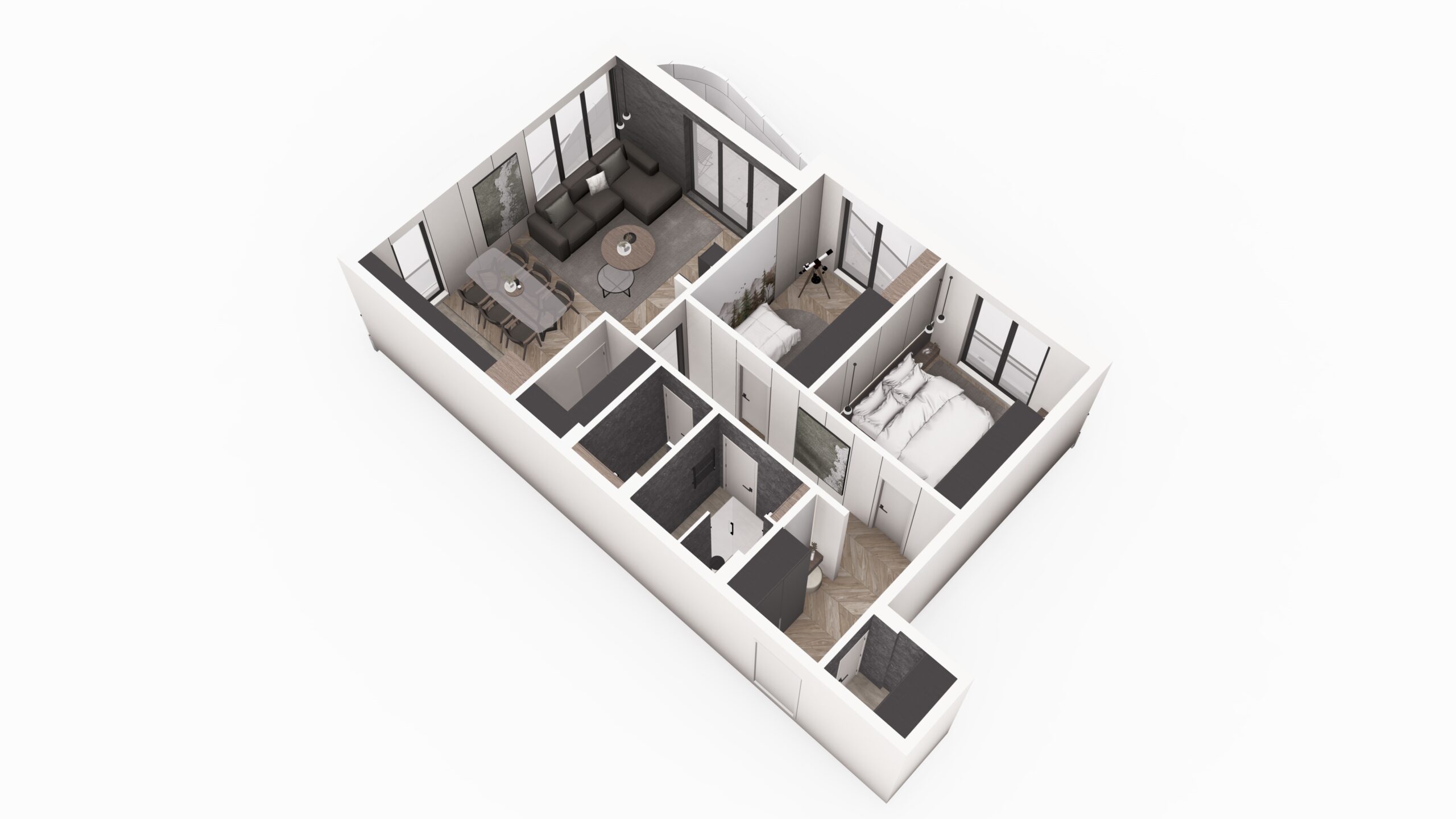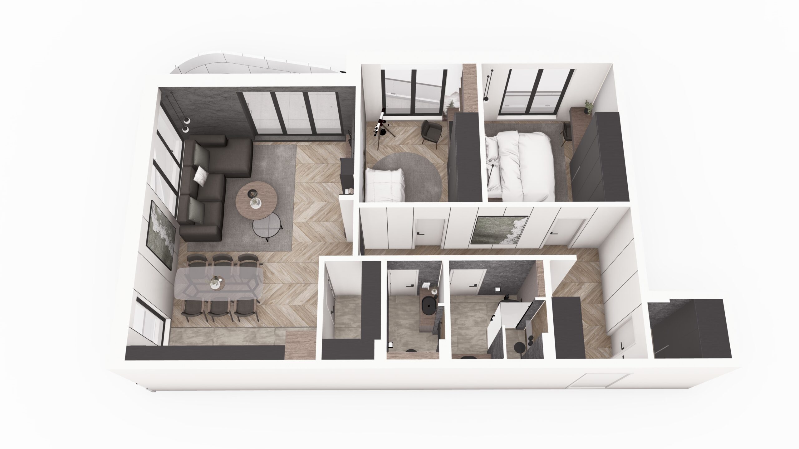 Pre nego što zakoračite u stan, zavirite u njegov enterijer kroz našu 3D virtuelnu turu. Pregledajte raspored prostorija, kvalitet materijala i osećaj prostora – sve iz udobnosti vašeg doma.